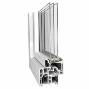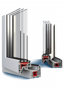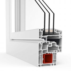 -Fensterprofil mit Stahleinlagen und Fensterdichtung